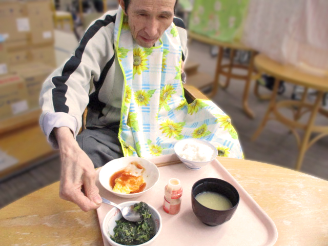 今日はS様を紹介したいと思います。S様に今日の朝ご飯でどの料理が特に美味しいか訪ねるとミートオムレツ・ほうれん草のごま和えが美味しいと話されてました。