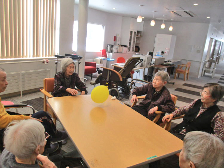 本日は、軽く体操した後に、風船バレーを行いました。