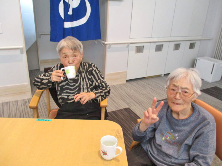 体を動かした後は、温かいコーヒーを提供し、飲まれました。
