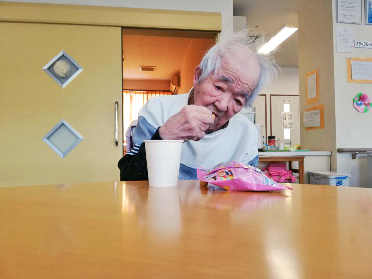 砂糖を入れたコーヒーと甘いお菓子を交互に食べており、K様は「甘くておいしい。」と話していました。全て完食したK様は「甘いものだばいつでも食べれる。」と笑って話してくれました。とても甘いものが好きなようですね。