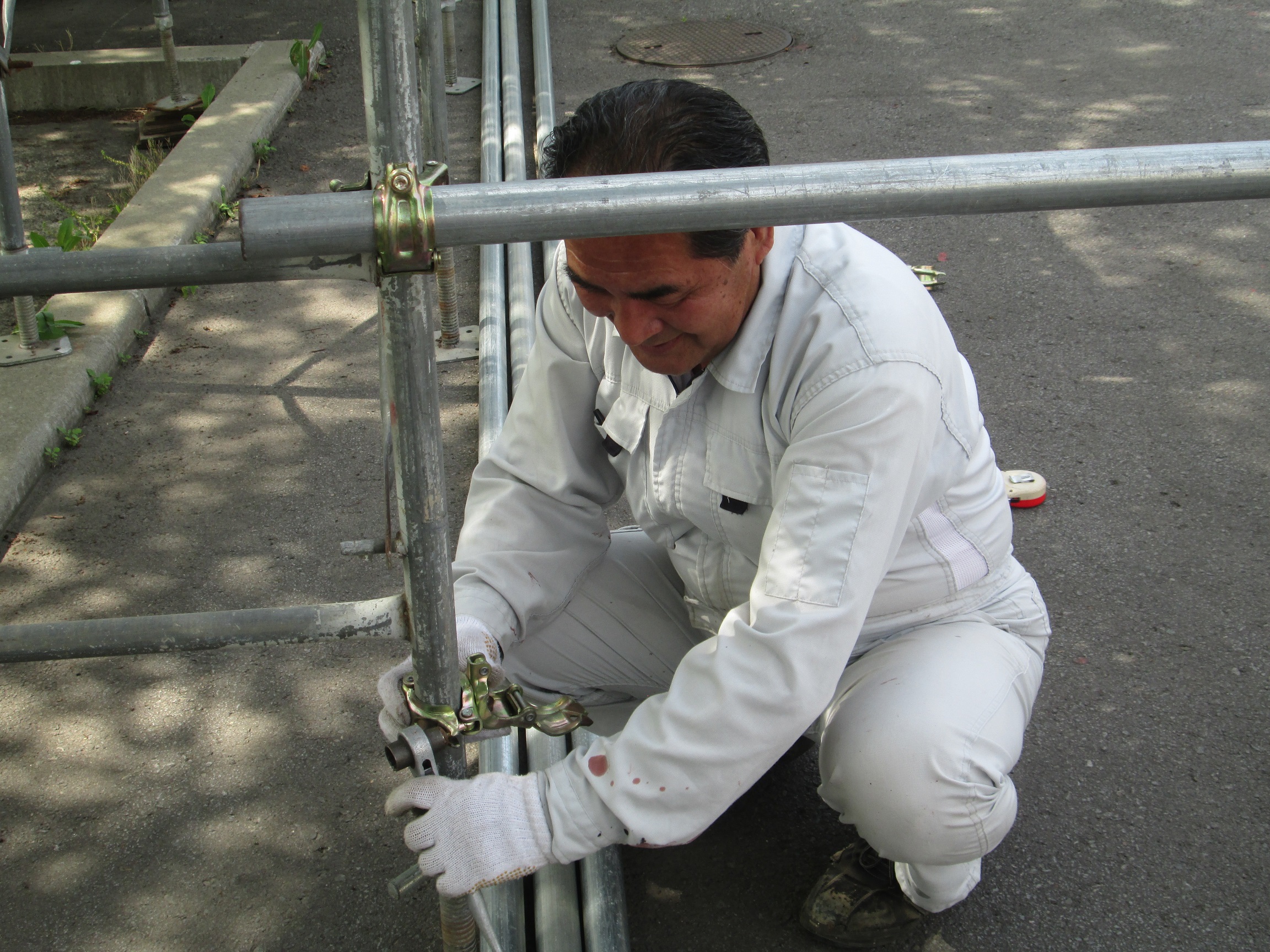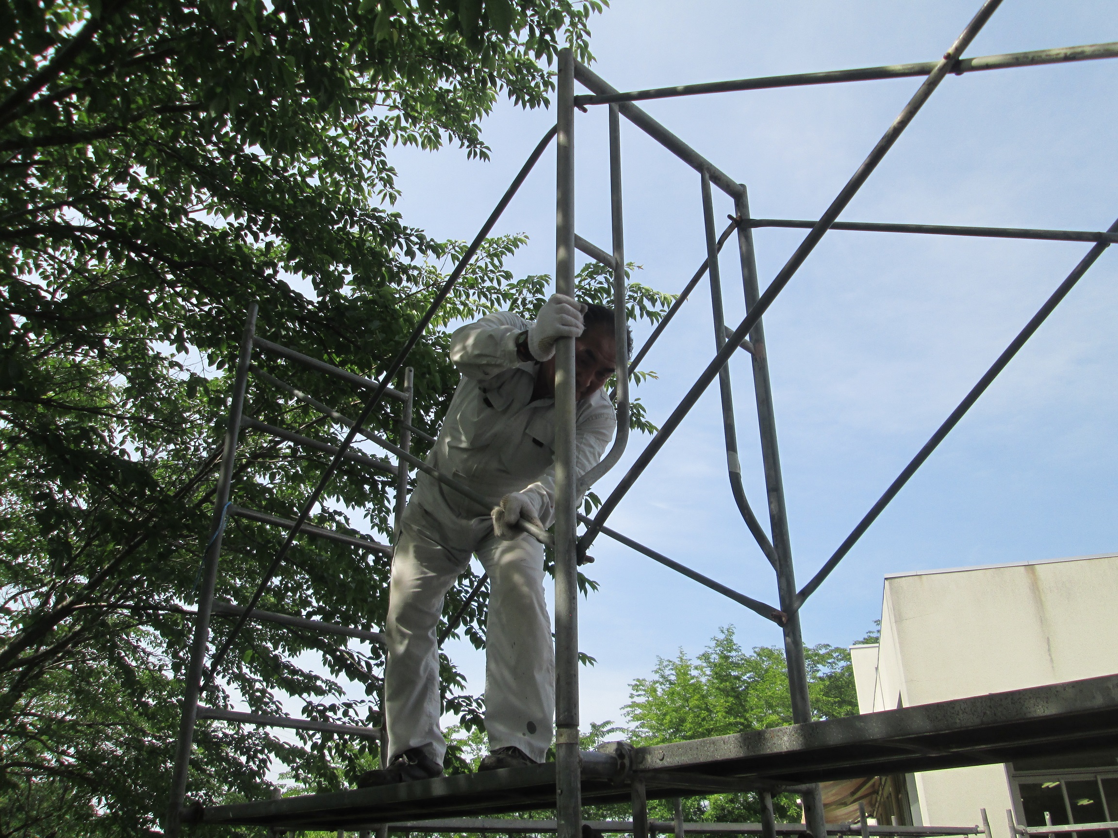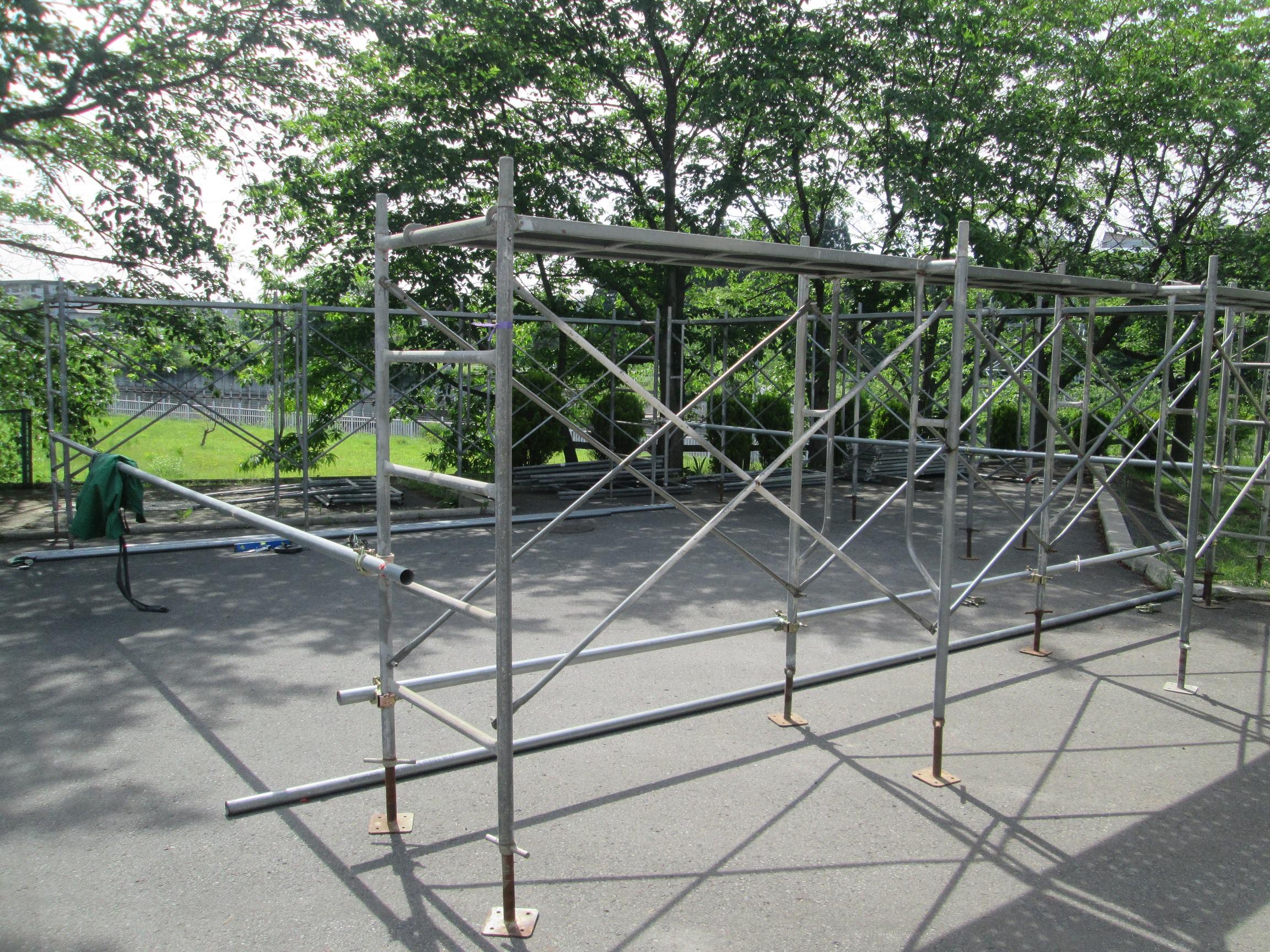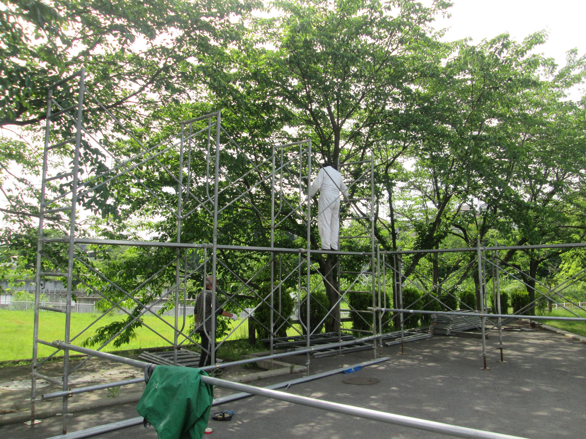 デイサービス園庭付近に【ねぷた小屋】の設置が始まりました。