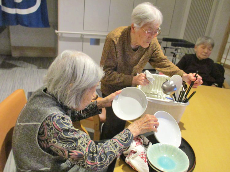 お客様に食器拭きをお願いした所笑顔で「やるやる」と話して下さり