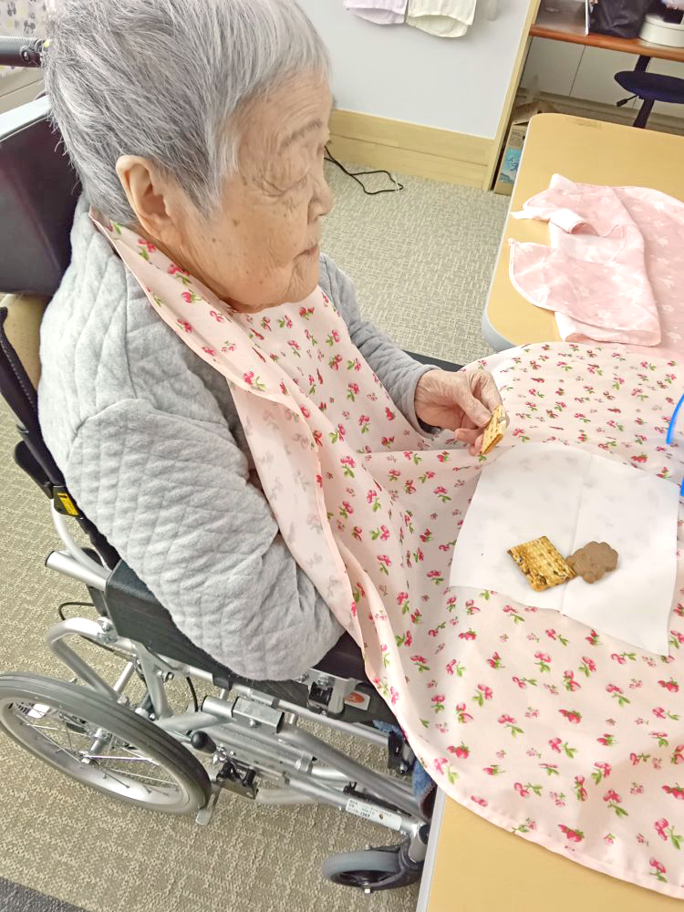 チョコレート系のお菓子があったので、バレンタイン仕様の可愛いお菓子もありました。皆様「このお菓子美味しかったよ~。」と嬉しそうに感想を述べていました。