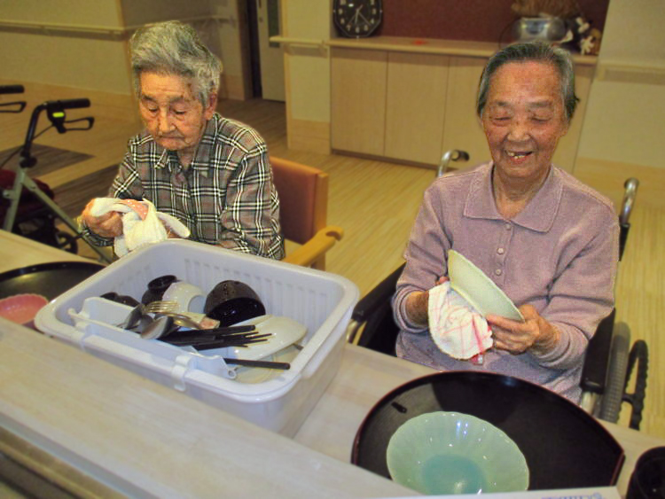 さて、昨日の夕食後のご様子です。夜でもまだまだ元気!職員のお手伝いやテレビ視聴等皆様それぞれに過ごされておりました。