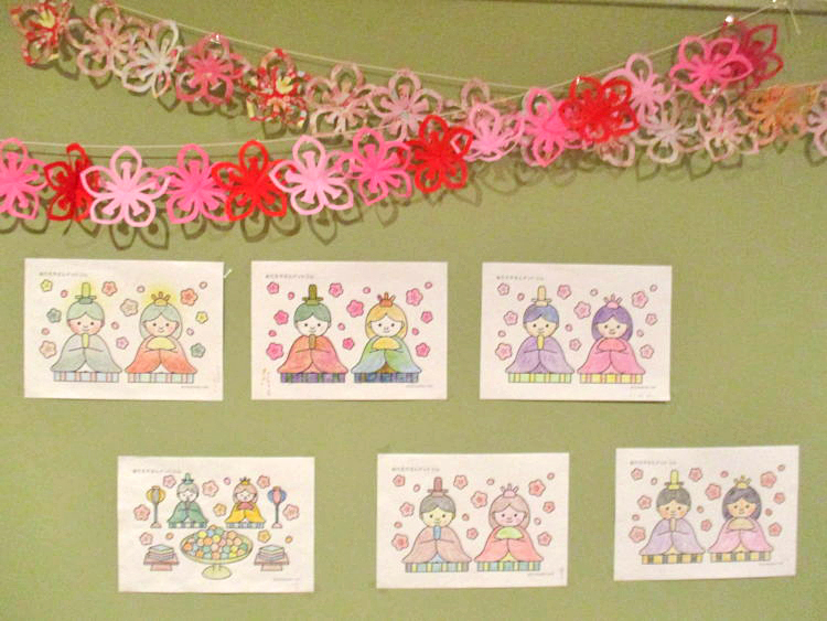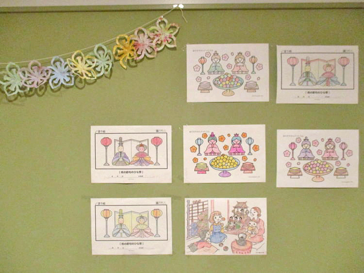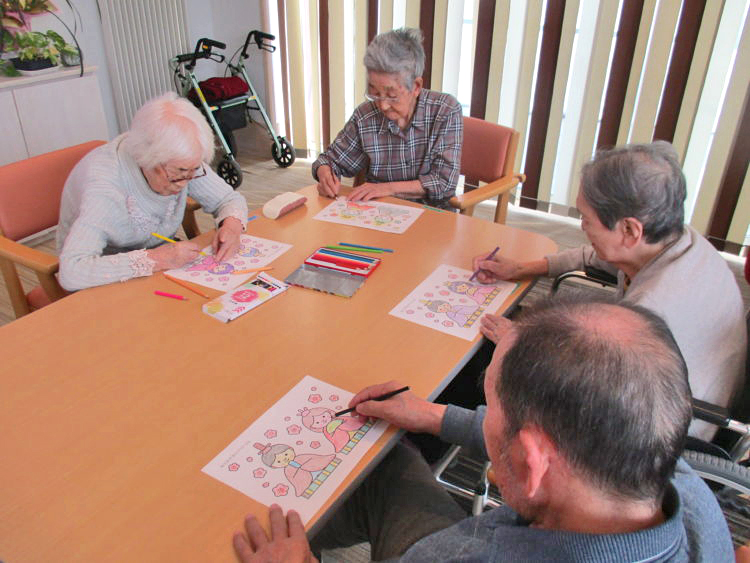 ひな祭りにちなんで本日は皆様にひな祭りの塗り絵をして頂き、一緒に歌を歌った後にひなあられを召し上がって頂きました。