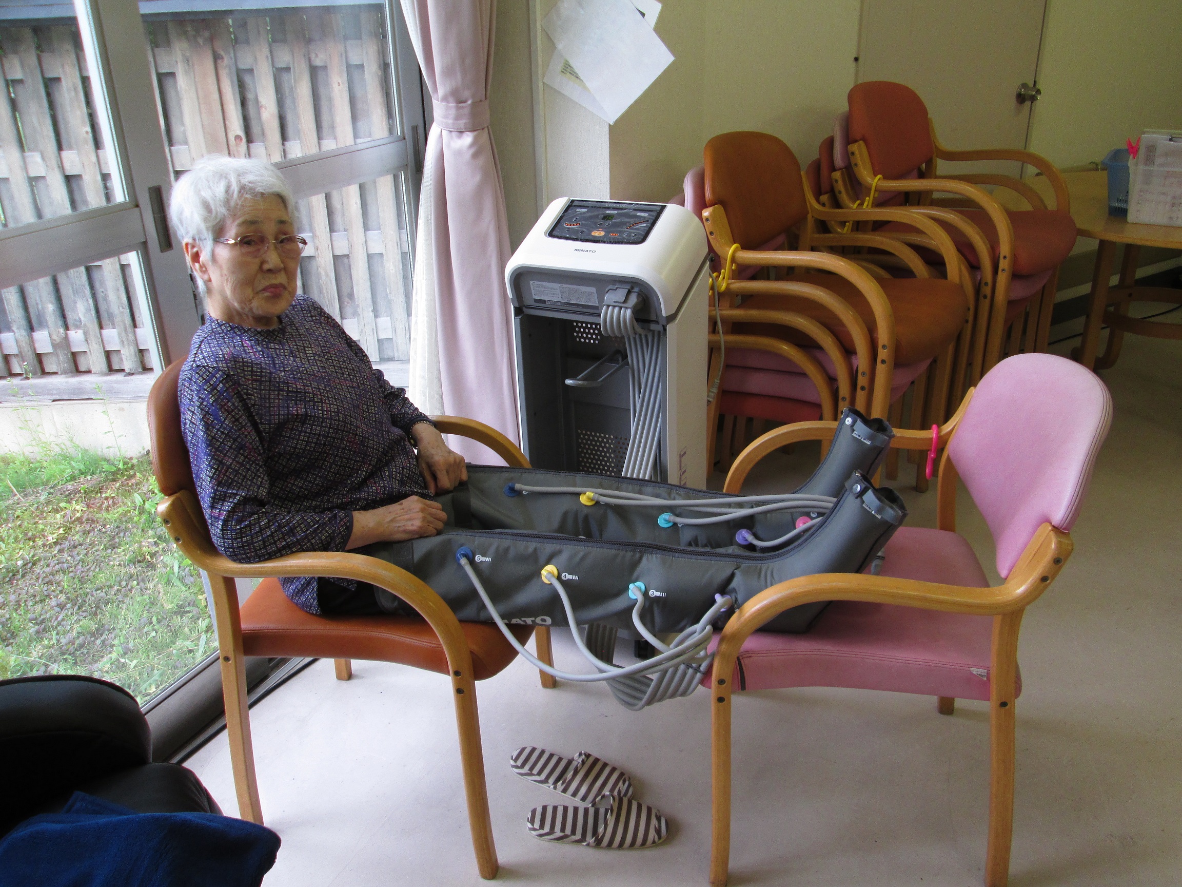 本日のデイサービスの利用K様。「昨日歩き疲れたので、今日マッサージしていきます」