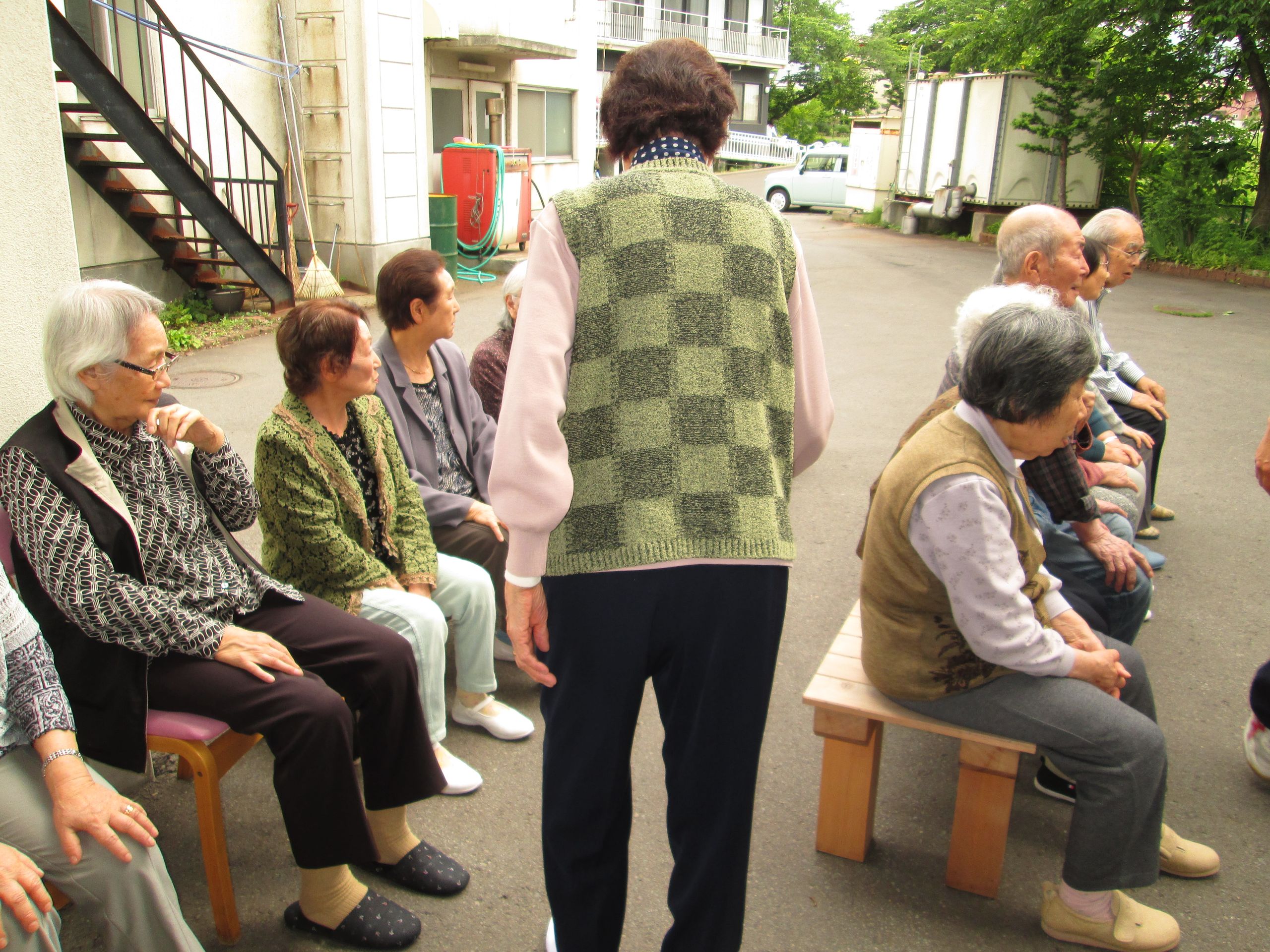 本日は、避難訓練を行いました。お客様にはゆっくり外に避難して頂き、点呼終了まで4分55秒との計測。