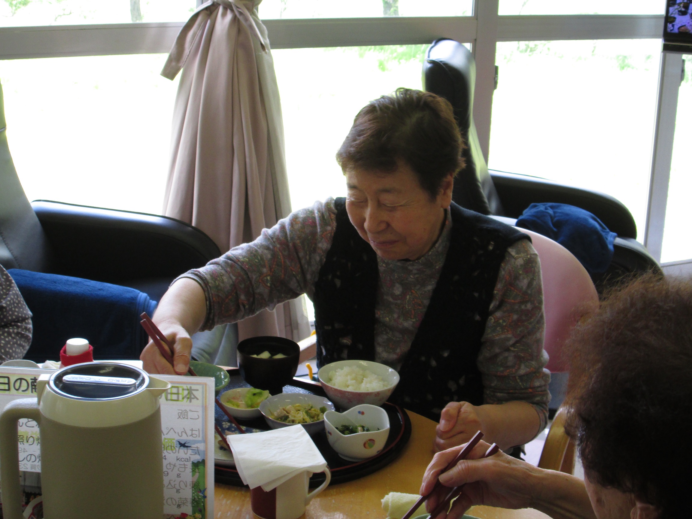 「ここのご飯は、本当に美味しくて。毎回、お昼ご飯が一番の楽しみなんだよ。」と話されており、毎回完食していただいております。