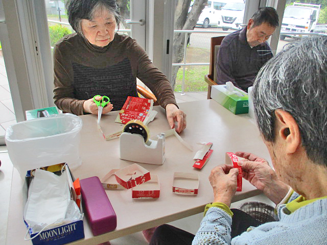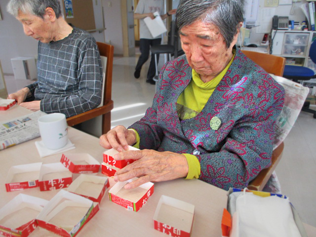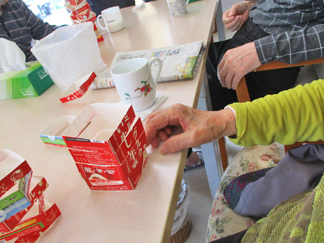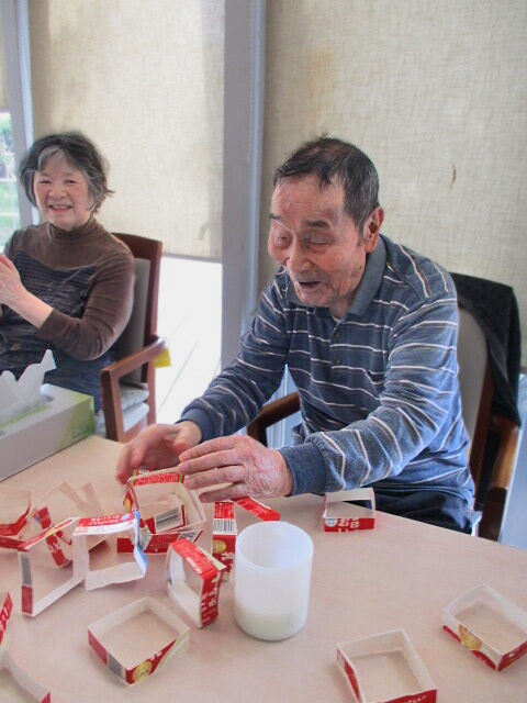 本日午前中に皆様に牛乳パックを切って頂きました。