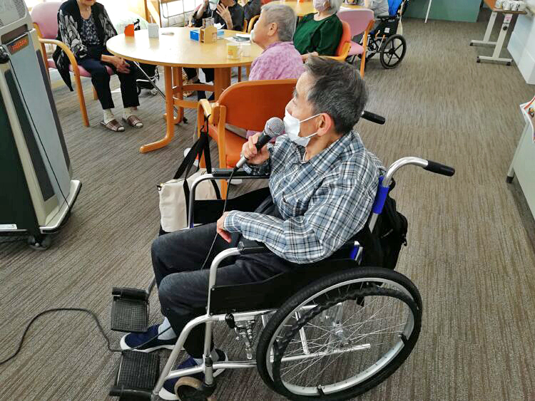 メインボーカルのA様・S様の歌声はとても優しく見事なほど上手でした。その歌声に合わせ歌えたのを中には感動している利用者様もおりました。私もその中の一人ですが・・・・また、歌声をきかせて頂きたいと思いました。