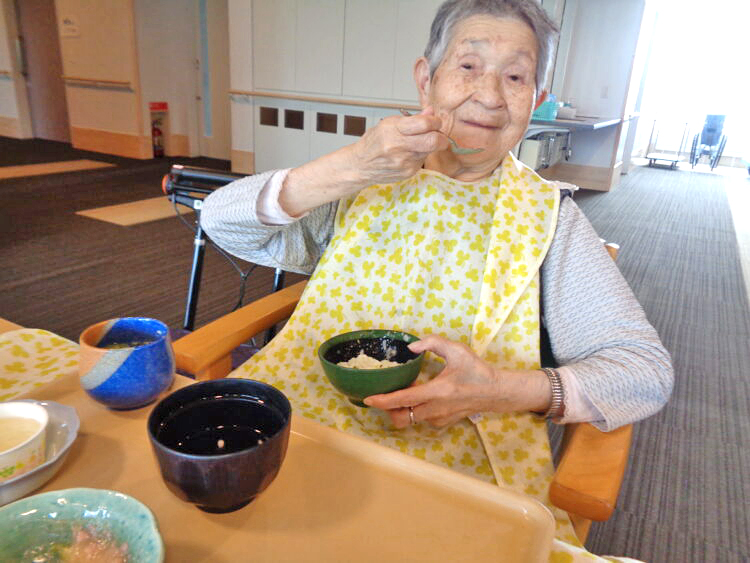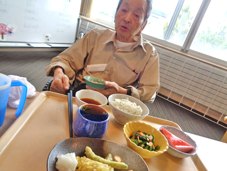 昼食は豪華に天婦羅や茶わん蒸し、ケーキが出ました。皆さん大満足のようでした。 K.S.