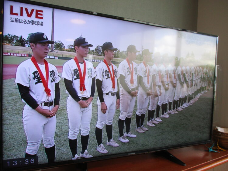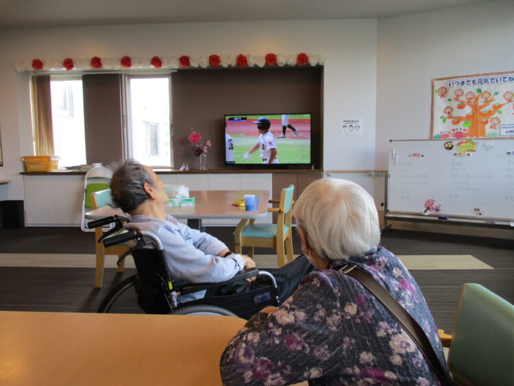 本日は高校野球青森県大会の決勝ということで、ショートステイ山崎でも、お客様、職員共にテレビに釘付けです。