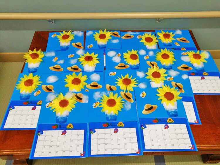 8月と言えば色々ありますが今回はひまわりをメインに自分だけのカレンダーを作っていただきました。