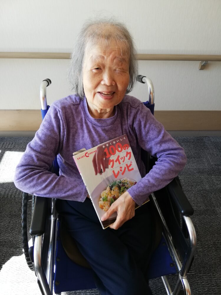 K様は本を読むのが好きです。小説や週刊誌だったり、色んなジャンルの本を読みます。本日はレシピ本を読んでおりました。見ながら「私も手が動くんであれば作りたい」と話されており、聞きながら私も手料理が食べてみたくなりました。