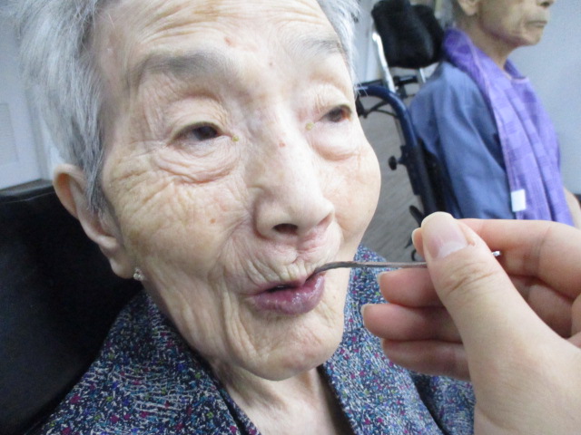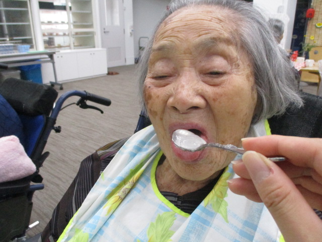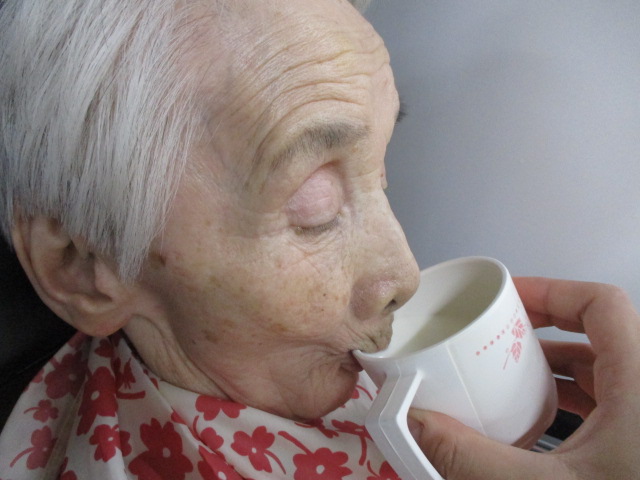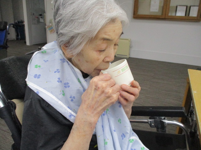 夏と言えばやはり水分補給は大切ですね。お客様もこまめに水分を摂るように促しております。自分で飲めない人もおり、そういう方にはこちらから介助で水分摂取を促しております。