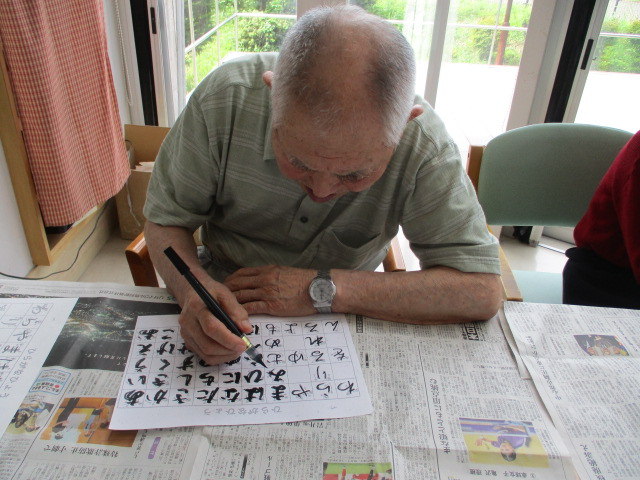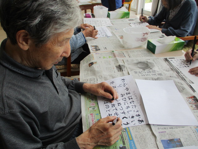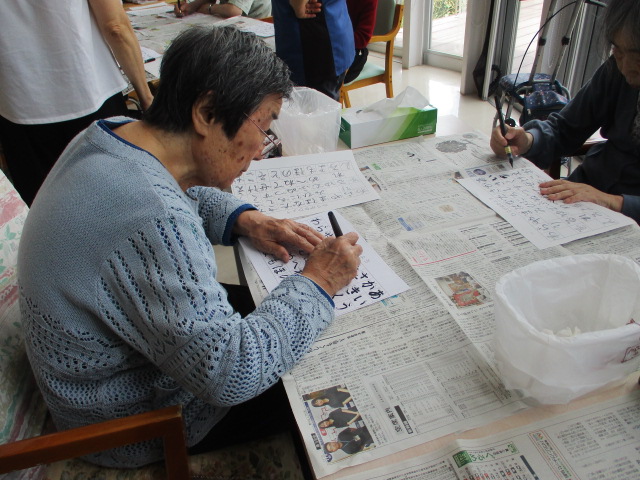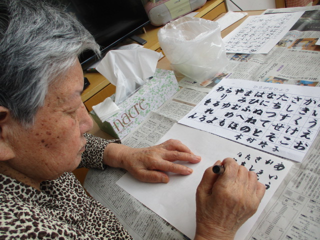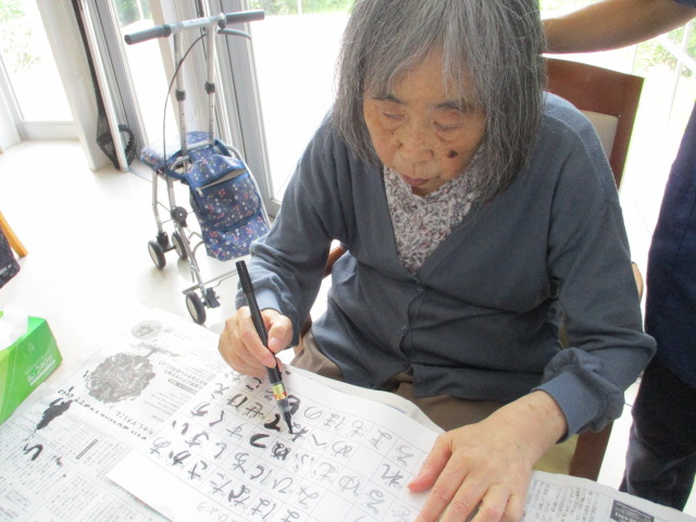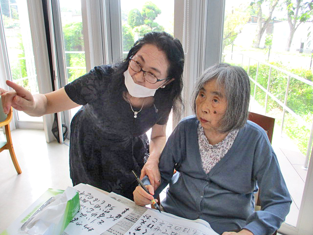 意欲的に習字に取り組んでおられるお客様。