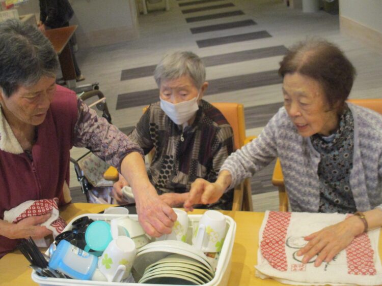 こちらは、仲良し3人組で「私、これ拭きたい」や「これ、拭いても良い?」と話しをされながら手伝ってくれました。