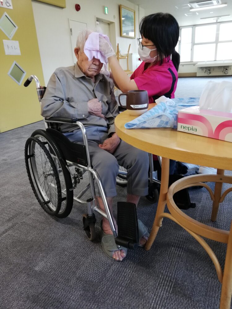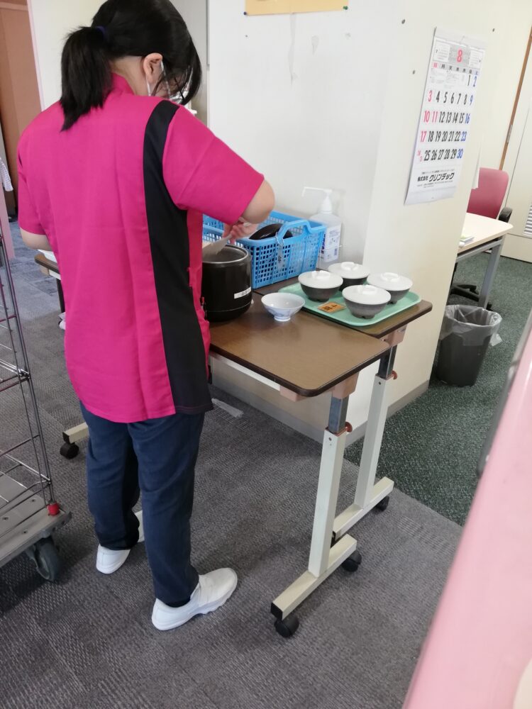 朝食をよそい、食べ終わったら下膳や口腔ケア。