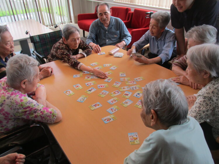 レクリエーション活動時にお客様と一緒にカルタを行いました。