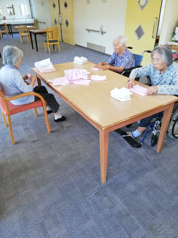 お昼過ぎ、お茶会まで少し時間が空いたため、タオルなどを畳んで頂きました。