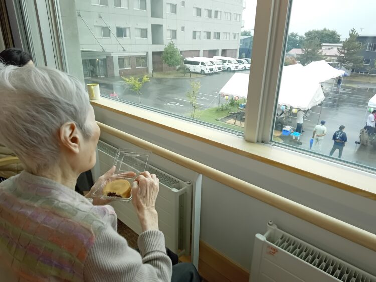 外は寒そうだからと、施設の中からお祭りを楽しむお客様もいらっしゃいました。