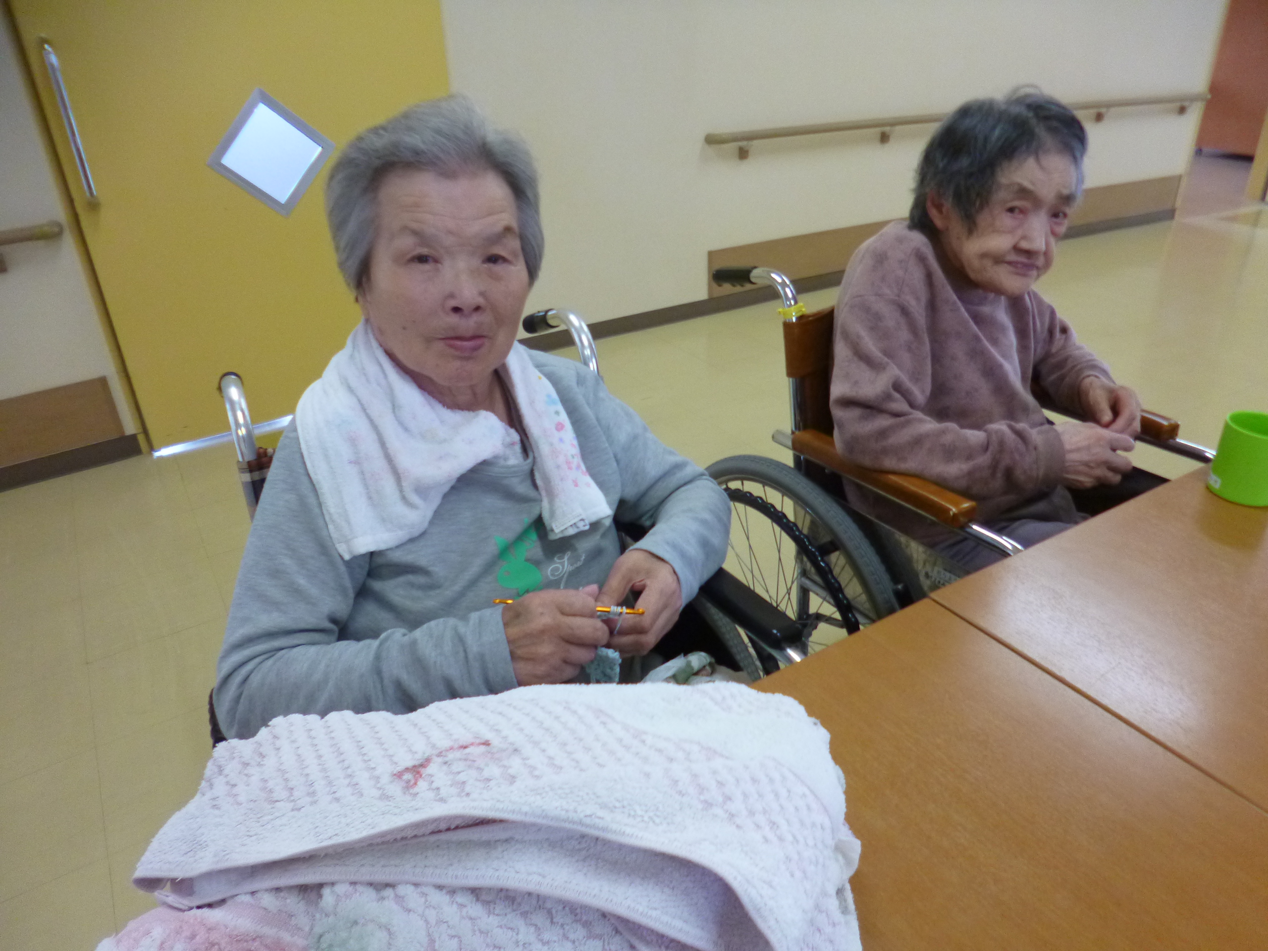 皆様こんにちは★今日は朝から雨が降ってどんよりした天気ですね。7月も中頃に入り段々と蒸し暑くなってきました。さて、今日はお風呂を今か今かと待っていたH様とS様を撮影しました。H様はお風呂の待ち時間に編み物をしていました。私が「何を編んでいるのですか?」と尋ねると、「内緒」とのこと。何か秘密のものでも編んでいるのでしょうか。完成がとても待ち遠しいです。S様はお茶を飲みながらまったりと待たれていました。入浴ケアの職員がくると二人共とても良い笑顔でいってきます!!とお風呂へいかれました。暑い夏は私達も熱いお風呂に浸かると疲れも吹き飛んでまた明日もお仕事頑張ろう!という気持ちになります。皆様は夏はシャワー派ですか?湯船に浸かる派ですか?私も仕事が終われば一目散にお風呂に浸かりたいと思います。ぐっすり眠って明日またお仕事頑張ります♪(ショートA・T)