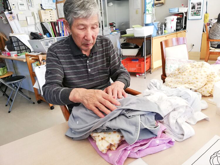 規則正しく生活され、午後は洗濯物たたみなどの軽作業やぬりえ、パズルなどお好きな事に取り組んでいらっしゃいます。