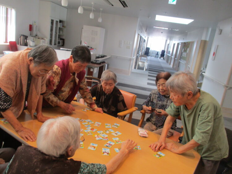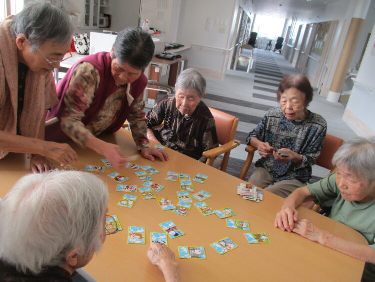 今日は皆様と一緒に昔懐かしいカルタ遊びを行いました!職員が手札を読み上げると「それ!」「これだ!」と皆様元気にカルタ遊びを楽しみました😊久しぶりのカルタ遊びにS様は「久しぶりにカルタやって楽しかった」と笑顔で話されておりました😊