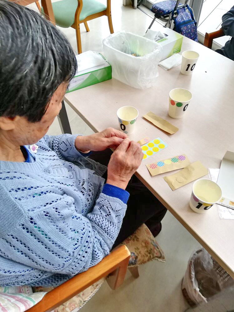 コップに自由にシールを貼っていきます。