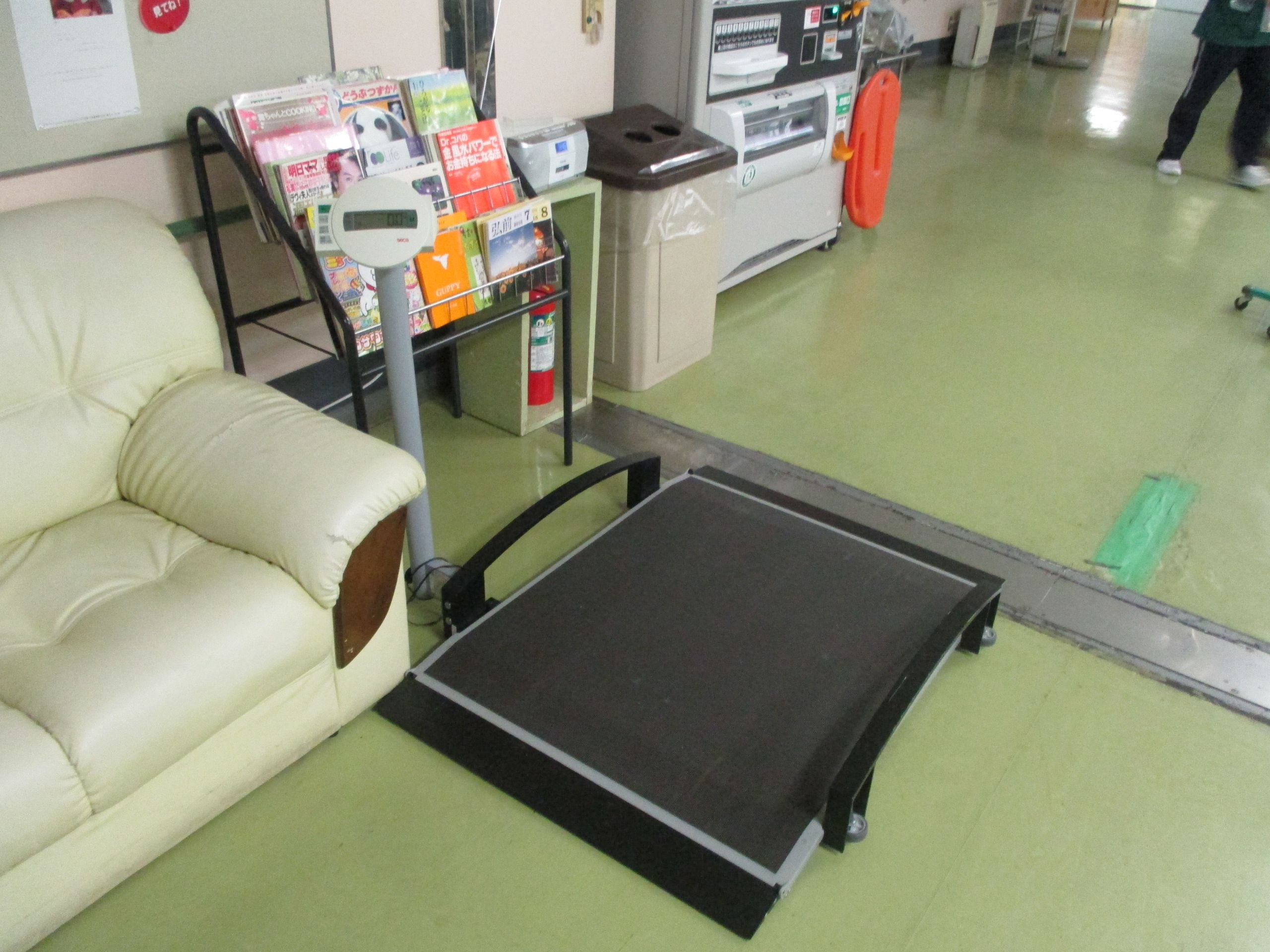 車椅子のまま体重計に乗り、全体重から車椅子の重さを引きます。