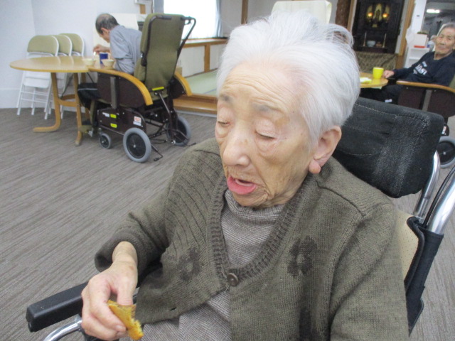 食べることが大好きなS様、お茶とおやつをペロリと平らげたあと「昼ご飯まだかな」と昼食が楽しみなご様子(^-^;