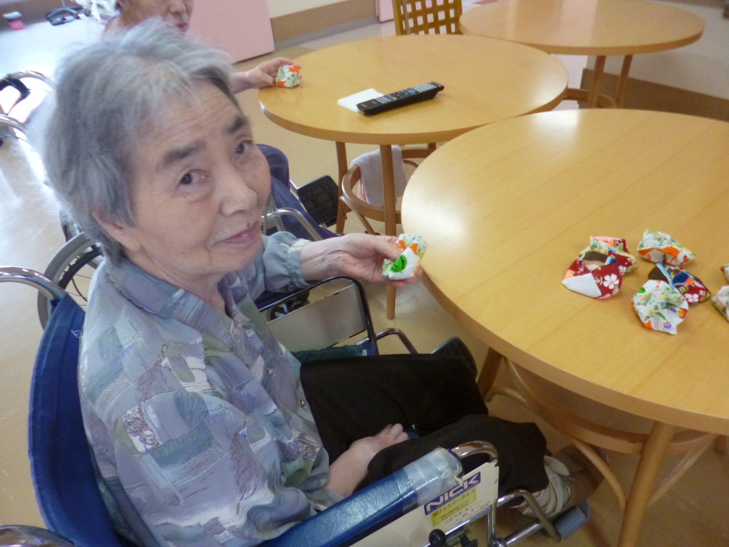 新館ショートステイの4階のお客様、N様の奥様がかわいいお手玉を手作りしてくださりました。
