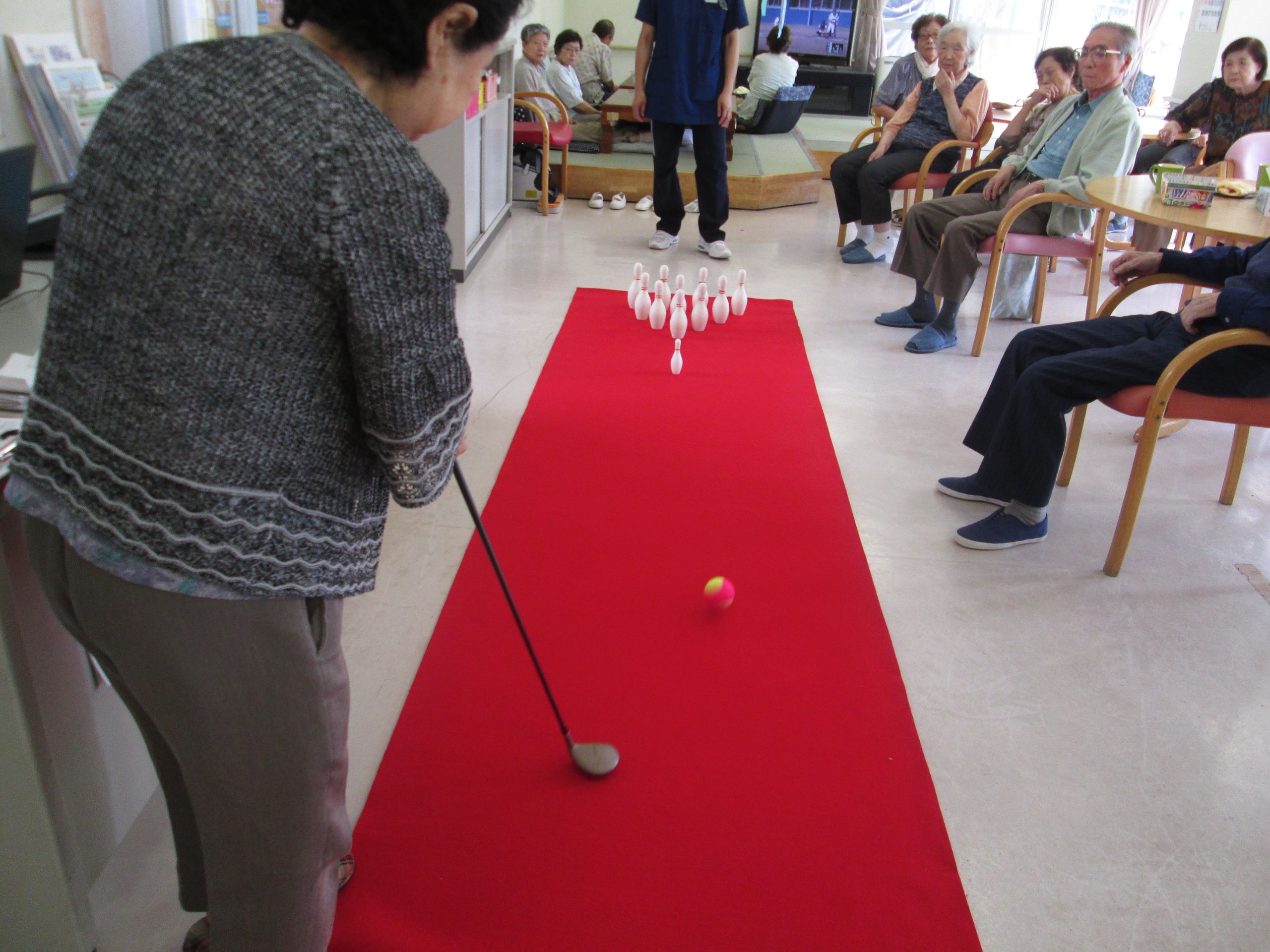 なかなか上手く倒せないもんだとの声が多く聞かれ、職員も挑戦!!
