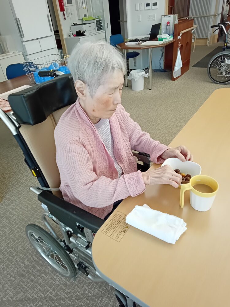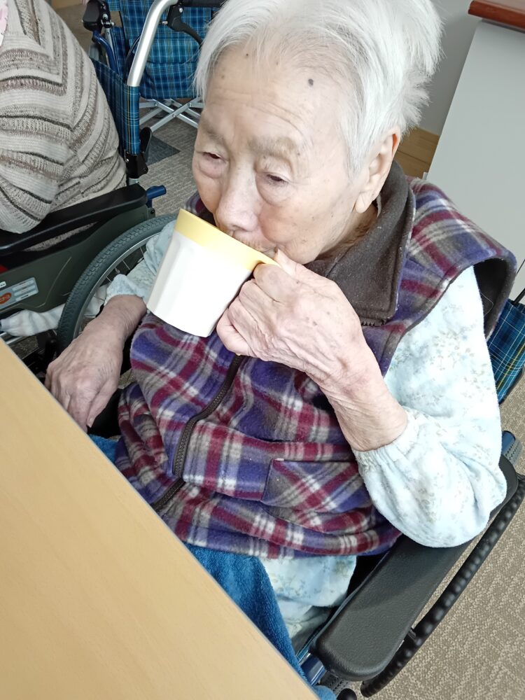 お客様も「いい天気だの。」と窓から空を眺めています。他には、水分を飲まれたりお菓子を食べて過ごしています。