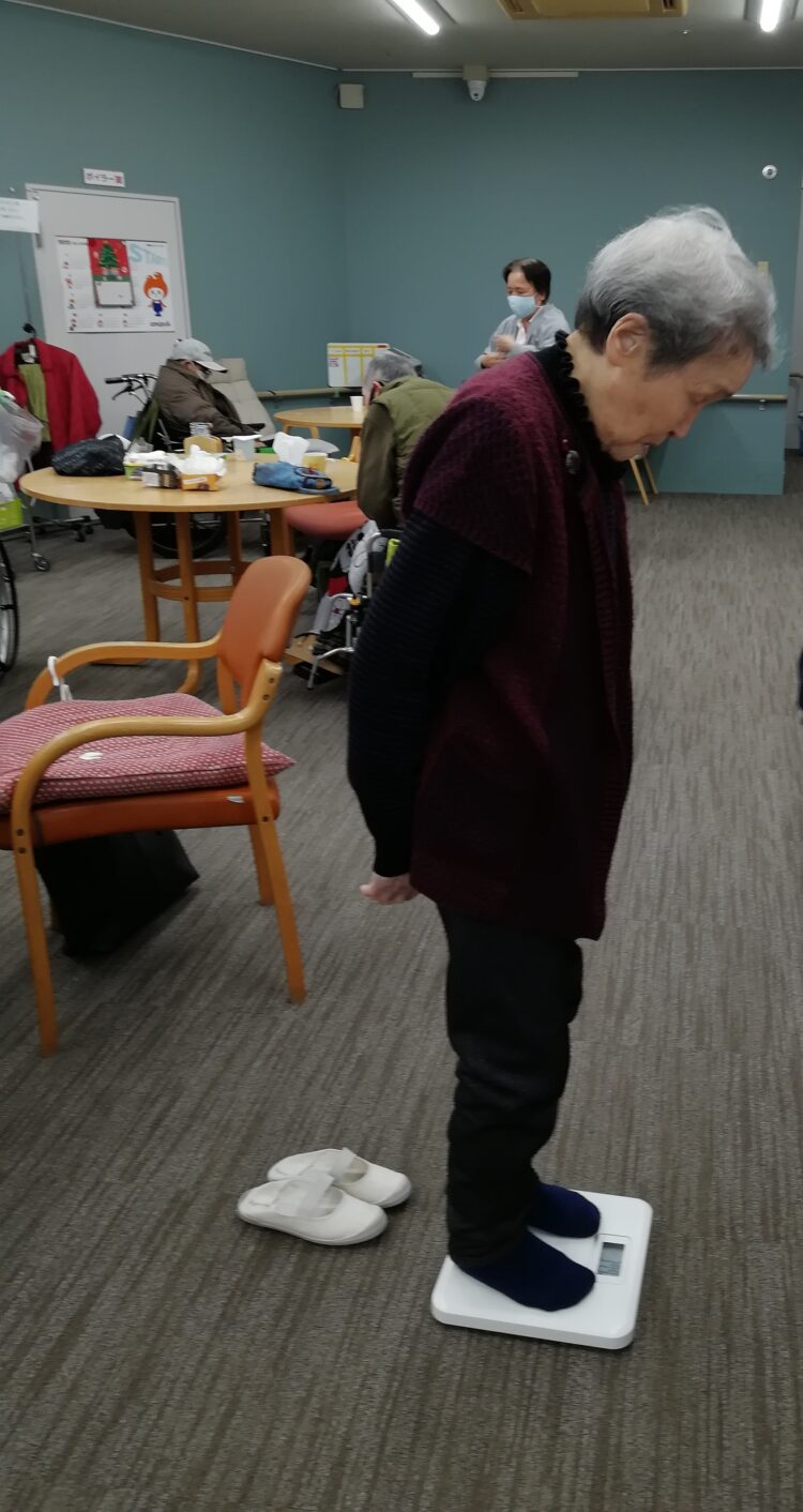ブログをご覧の皆さん、こんにちは。今日のデイサービス午後からは昨日に引き続き身体測定の時間・・・・ということでみんな大好き体重測定を行いました。利用者様苦い表情をされておりましたが・・・急に上着を1枚脱ぎ始め如何に体重を軽くするか考えていたようです。そしていざ体重計に乗り・・・・・じ~っと見つめておりました。そしてちょっとは軽くなったんでねが。と話されておりました。