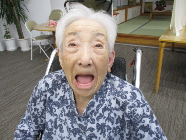 S様は朝ご機嫌だった様子で、写真を撮らせてもらおうとカメラを向けた所、満面の笑みを見せて下さいました。輝くような明るい表情で冬の寂しさを吹き飛ばしてくれるような印象です。これからもお元気にお過ごしください。