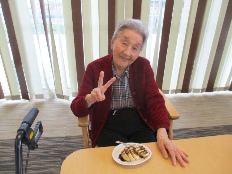 今回の誕生日会では蒸しパンを提供しました。チョコソースとはちみつもトッピングしましたよ☆