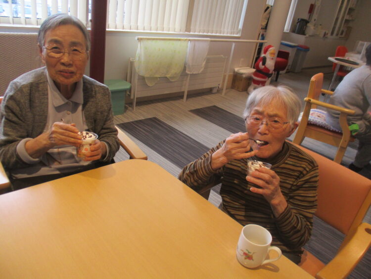 今日はクリスマスイブですね。天気が雪ではなく雨が降ってきました。気温も低く寒い1日となりましたね。それではグループホーム城南山崎の様子をご紹介します。