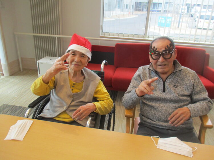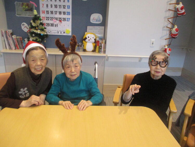 最後にサンタの帽子を被ったり、トナカイの角を付けて仮装しました。