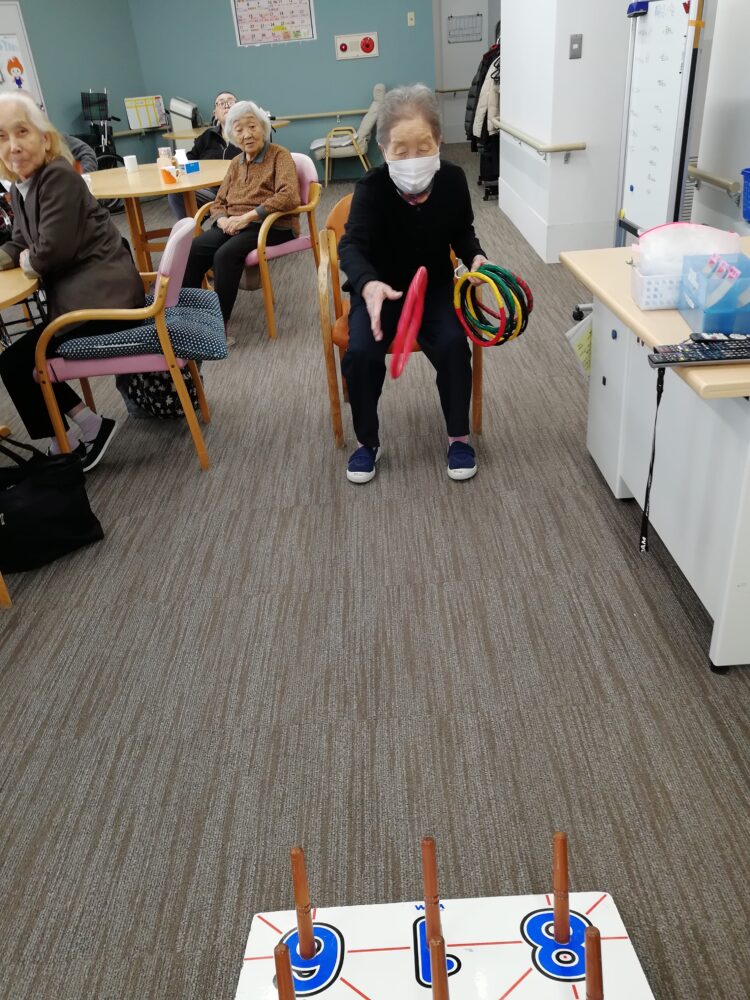 今日の午後の時間はゲームレク恒例輪投げ大会でした。