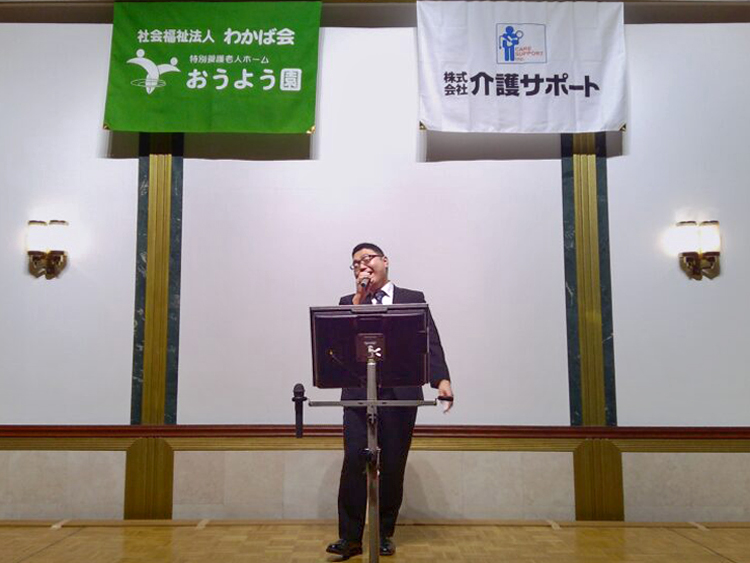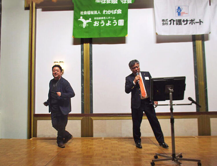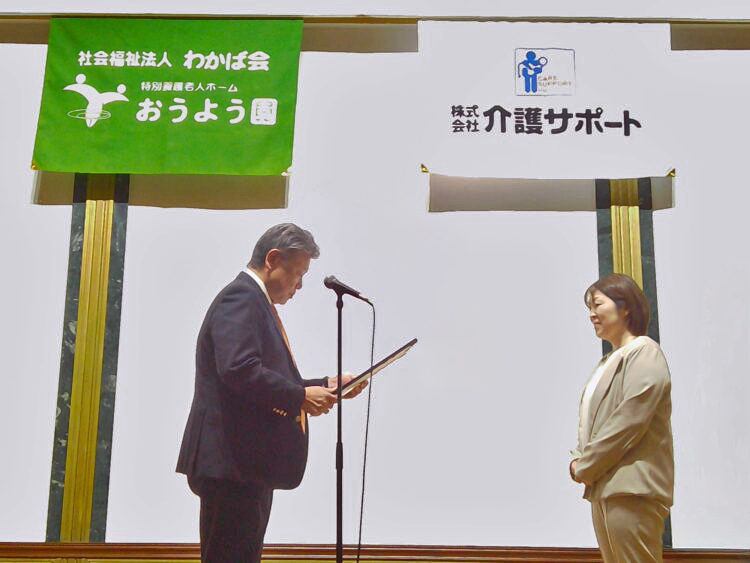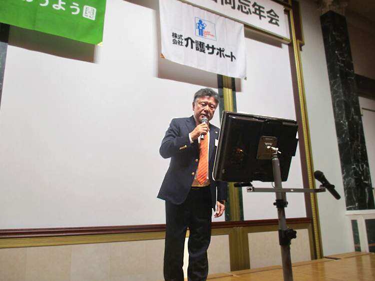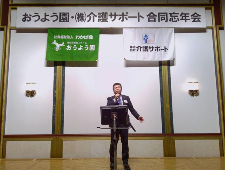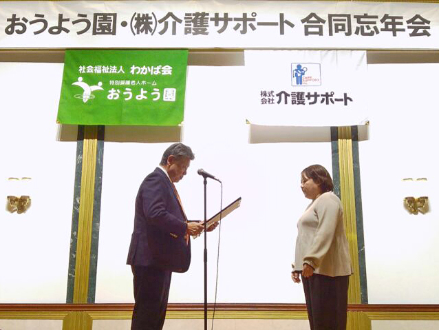 三上理事長の挨拶より始まり、乾杯、来年の希望のプロジェクター放映、MVS(最優秀職員)、各事業所の優秀職員の発表が行われました。今年度、おうよう園のMVSは2名の職員が表彰となりました。