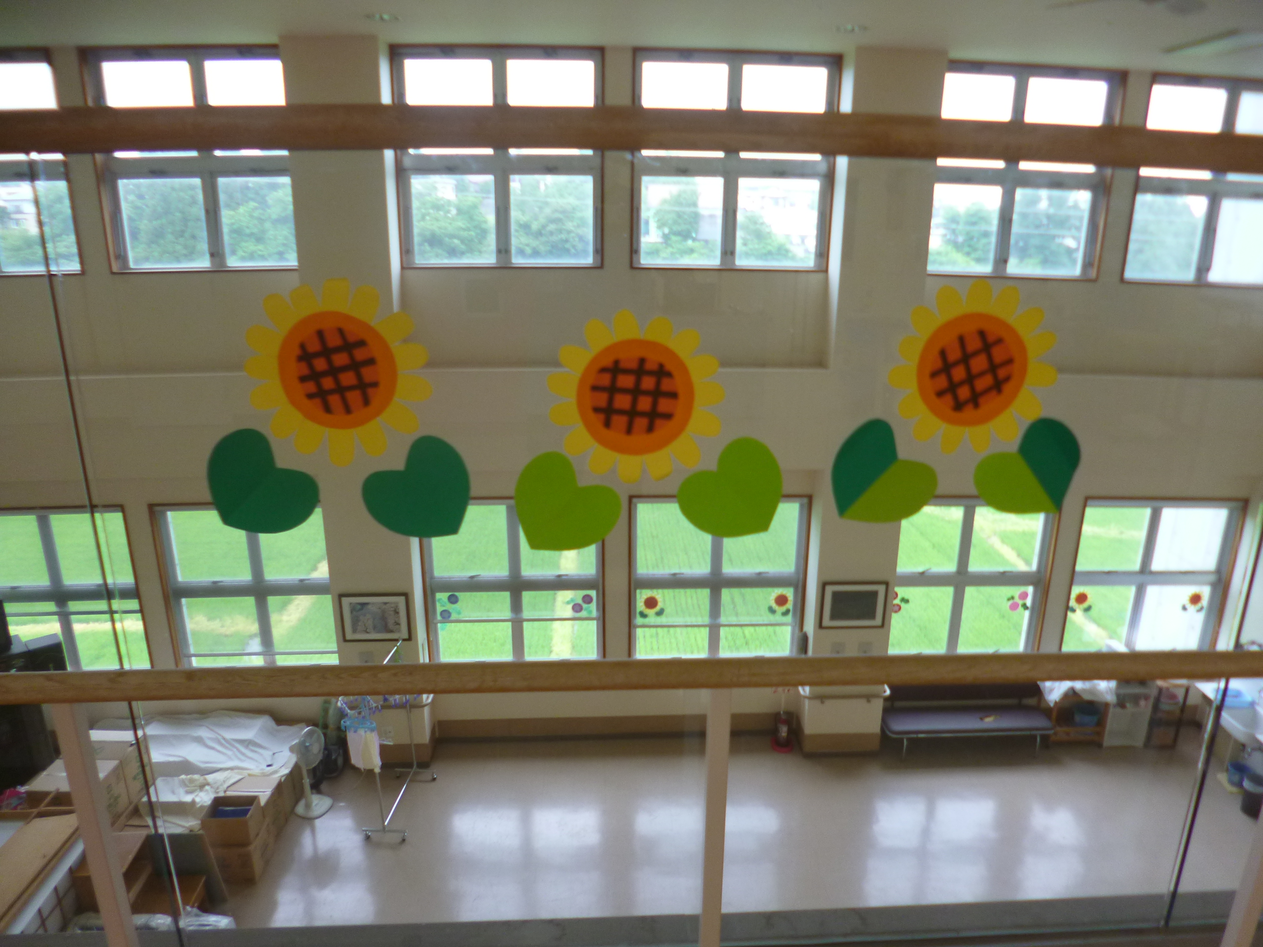 おうよう園の中では、ひまわりが咲いています。
