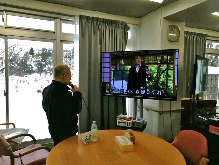 また、カラオケを声かけるとA様、始めは今日は・・・・・・と渋っておりましたが歌って下さいました。相変わらずの美声で皆様うっとりしながら歌を聴いておりました。