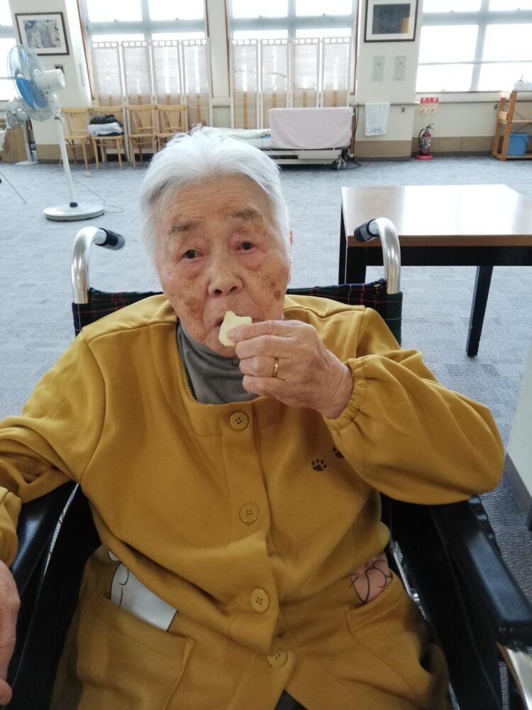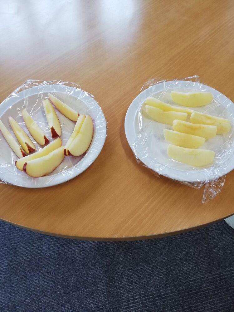 今回はお茶会の時間に、お客様のご家族様よりいただいた林檎を提供しました。