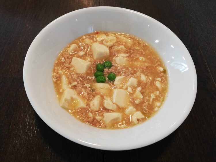ごはん、レタススープ、麻婆豆腐、いんげんの炒め物、大根サラダ、しば漬け