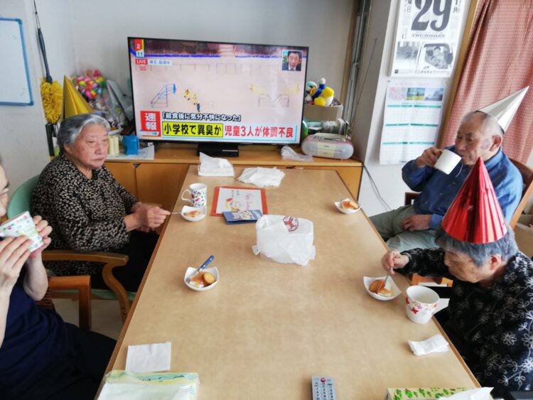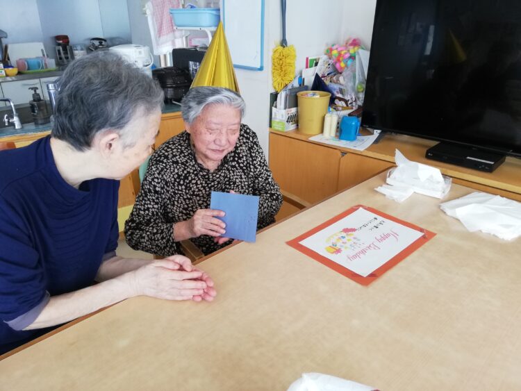 さて、ホームでは先日誕生会を開催しました。誕生日を迎えたのはk様です。普段はおとなしい方ですが、この日は緊張しながらも、たくさんの笑顔がありました。一言お願いすると「今日はありがとうございました。」と感謝の言葉を述べておりました。