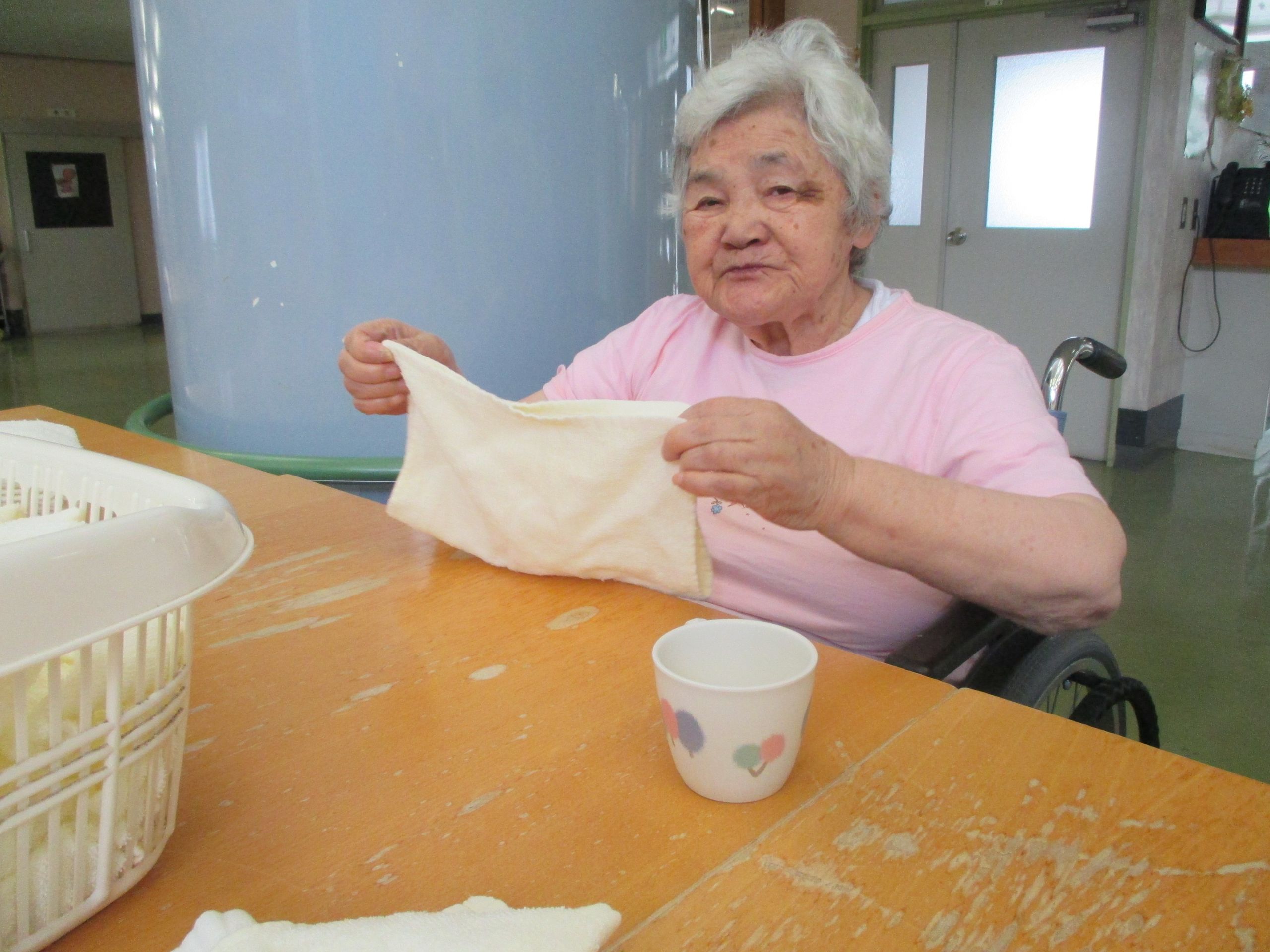 朝、お客様が起きた時に使う洗顔タオルを畳んでくれます。