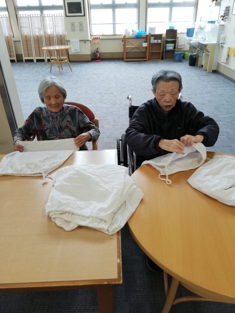 職員が洗濯物を返していると、「それも畳もうか?」と話されたので、お言葉に甘えることにしました。たくさんあった洗濯物を入れた袋も次々に綺麗に畳まれていきました。