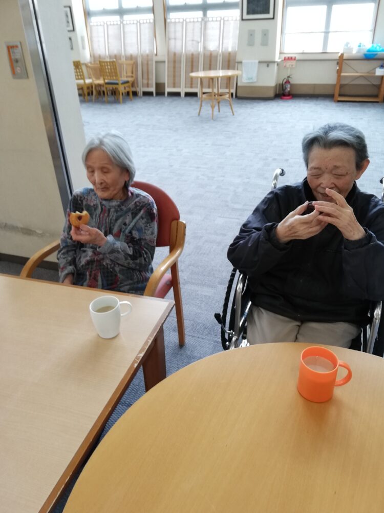仕事を終えて、コーヒーとお菓子をおいしそうに食べるY様とW様。「またお手伝いしてもいいよ」と笑顔で話されておりました。