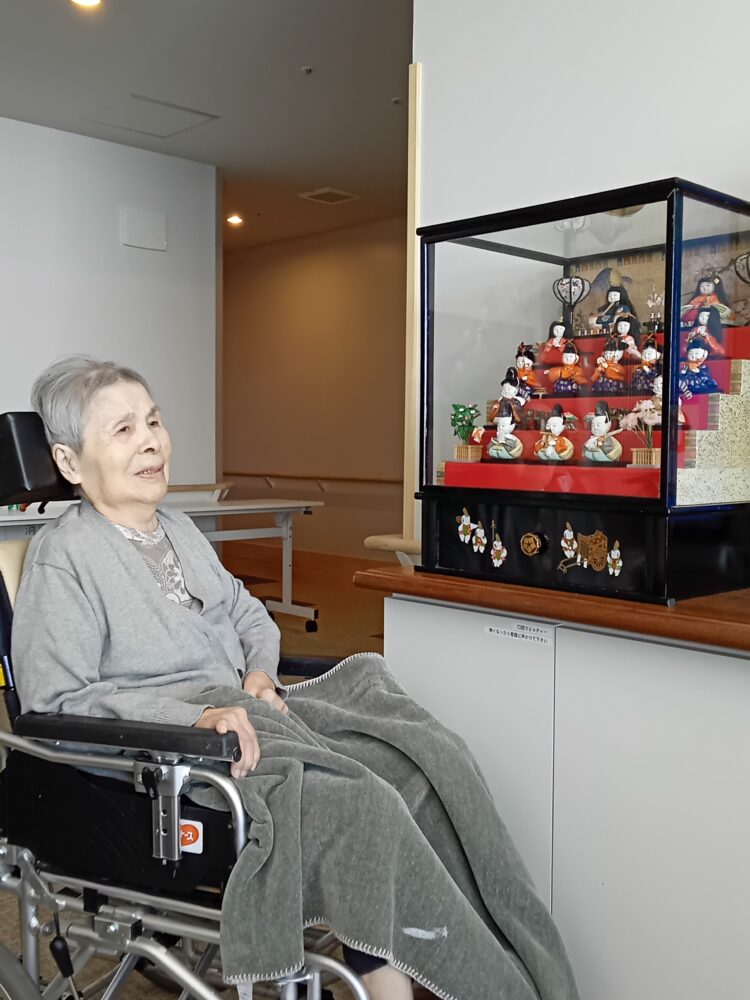 まだまだ寒くて雪が多いですが、暦の上では立春が過ぎ、特養山崎ではお客様がみんなで過ごすホールにひな壇を飾りました🌸